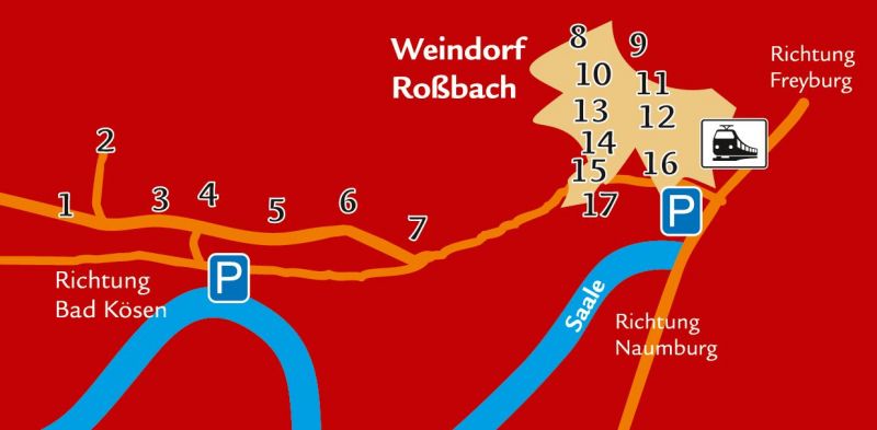 Inspiriert vom Erfolg der Saale-Weinmeile findet jährlich am 4. Adventswochenende ein von einheimischen Weingütern organisierter Weihnachtsmarkt entlang der Roßbacher und Naumburger Weinberge statt. Neben einheimischen Weinen und hausgemachten Glühwein steht originelle lokale Handwerskunst zur Schau und zum Verkauf. Leckereien und Deftiges finden Sie bei jedem der Teilnehmer. Diverse Ausstellungen und musikalische Darbietungen erweitern das Spektrum der weihnachtlichen Angebote.